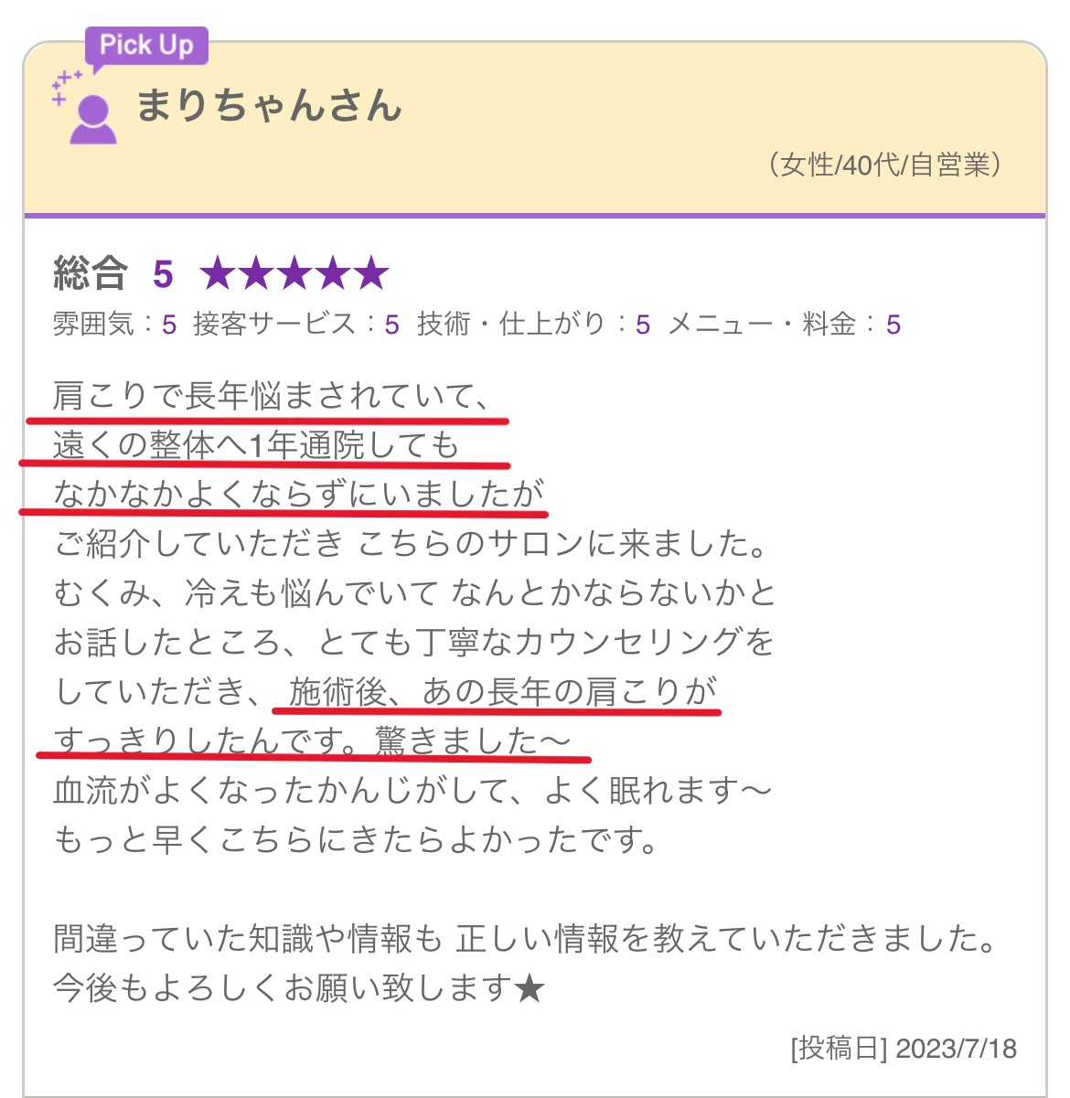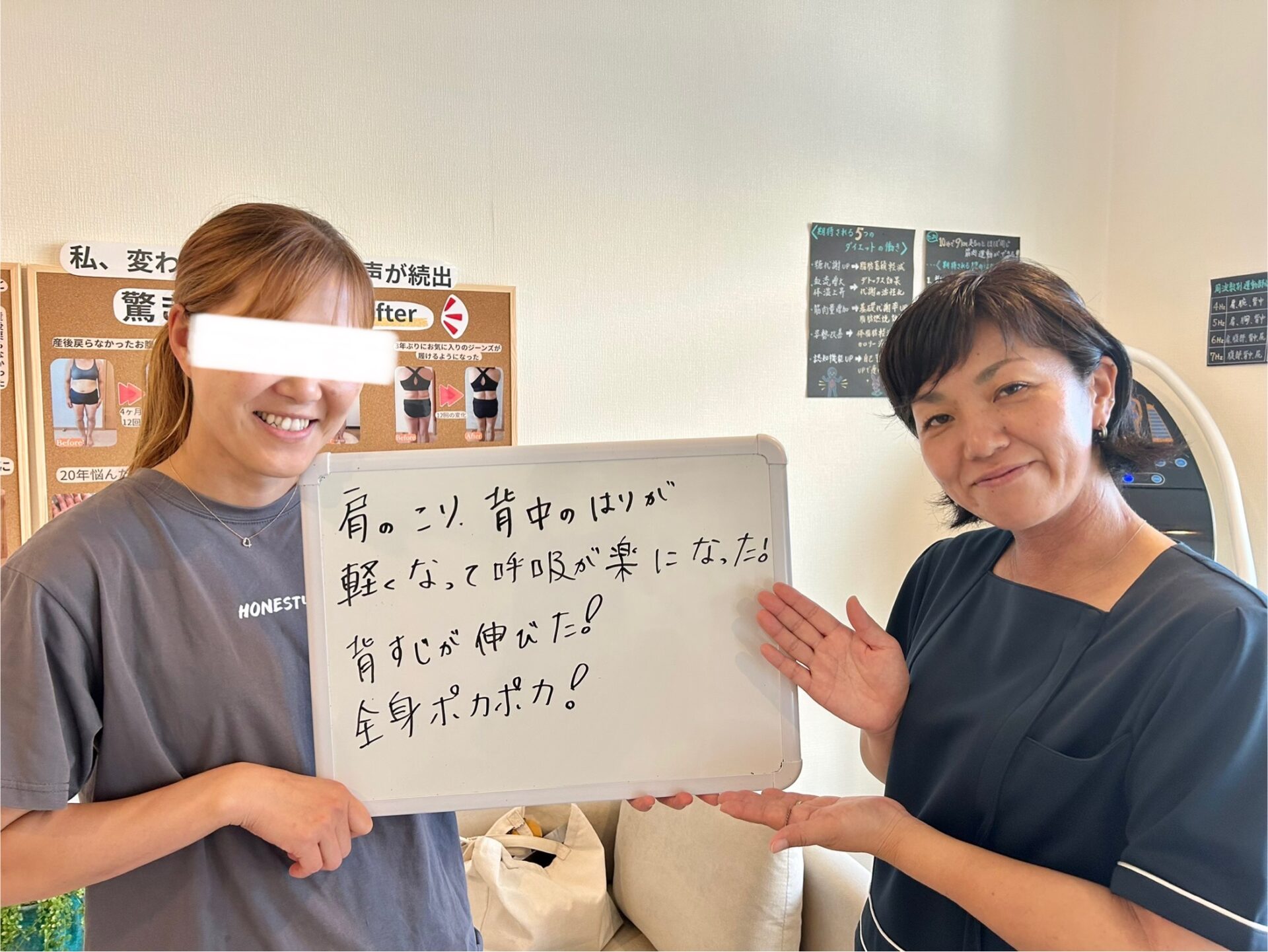 肩こりに長年悩まされていて整体へ1年通っていたが解消せず、Wobeに来てから長年の肩こりがスッキリ!