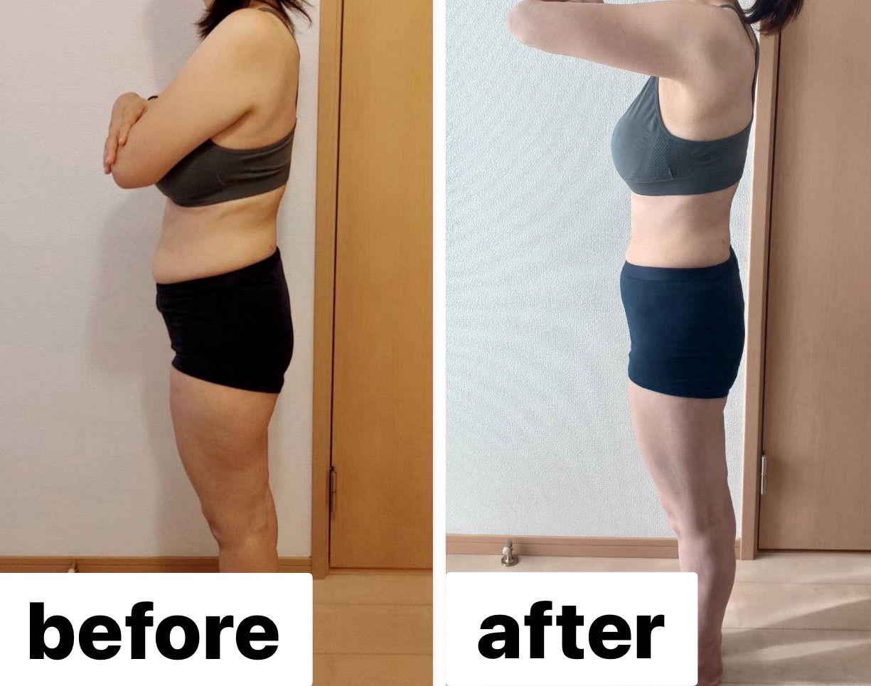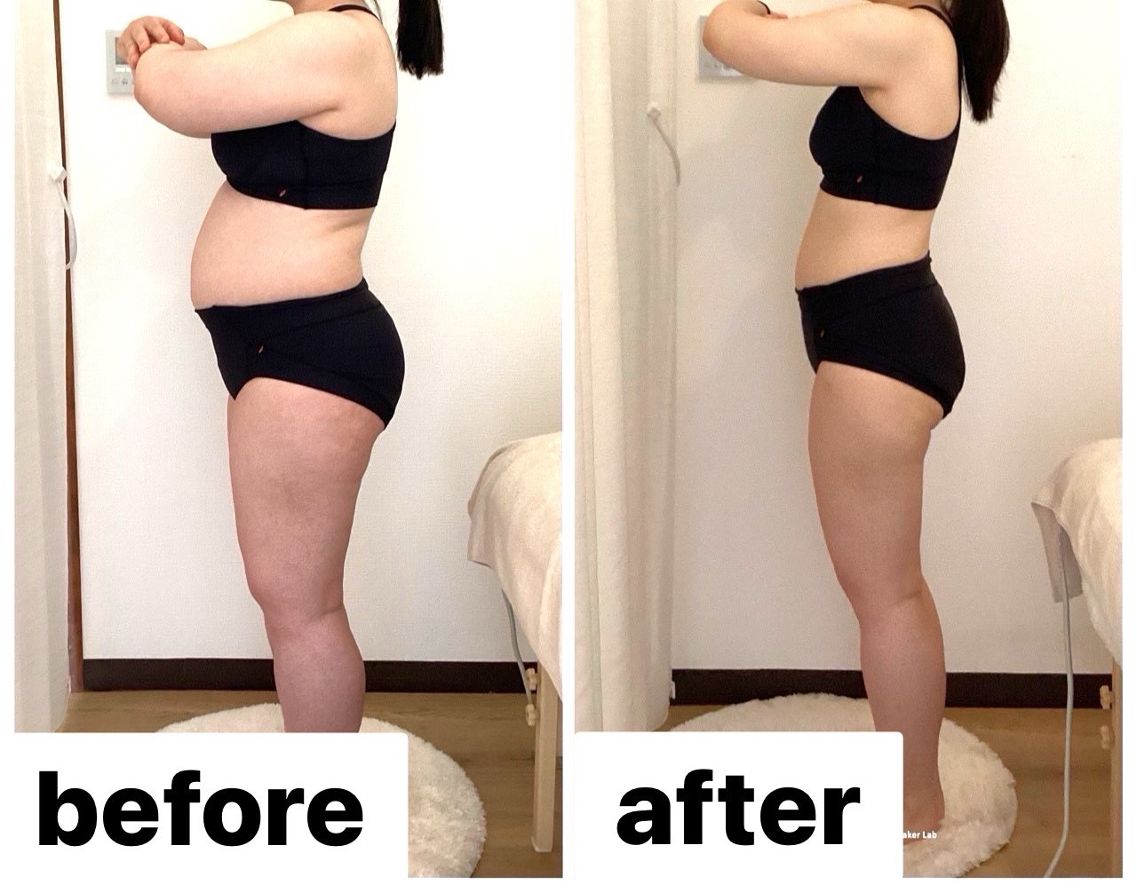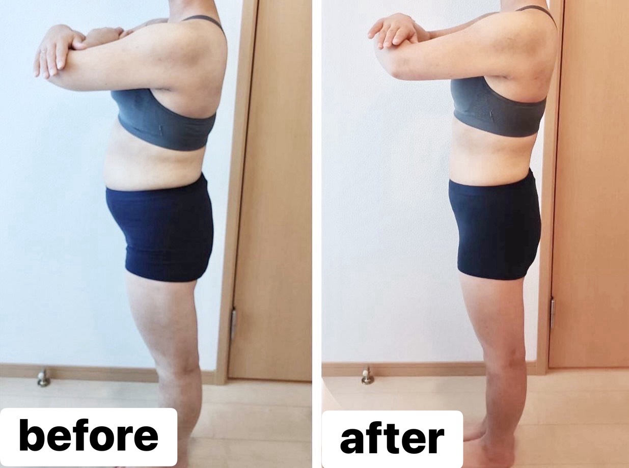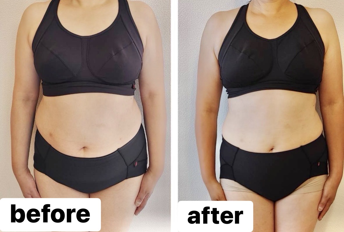 ぽっこりお腹も解消で体型を隠す服を卒業。